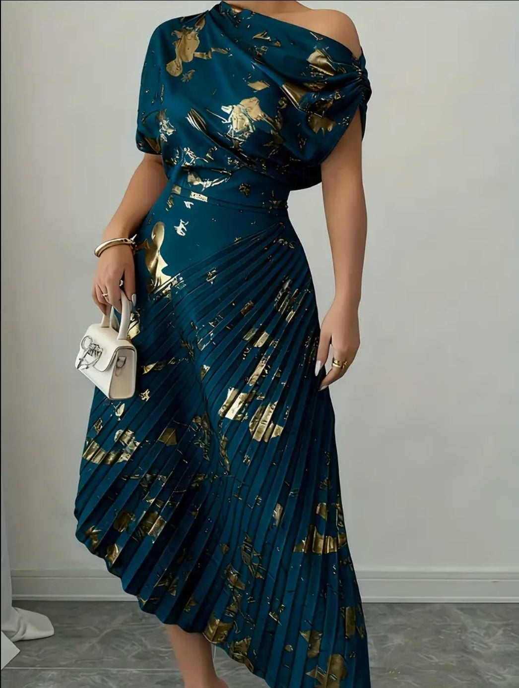 Women'S Elegant Asymmetrical Off-Shoulder/One-Shoulder Dress - /Soft Pink/Neutral Tones - Flowy A-Line Silhouette - Lightweight Formal & Casual Outfit for Parties, Everyday - Spring/summer Women'S Clothing, Party Attire, Geometric Pattern
