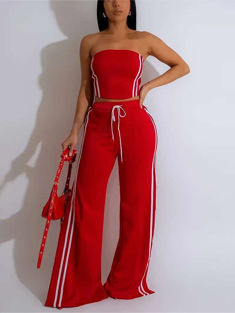 Loose-Fitting Striped Long Pants Set with a Bustier Top
