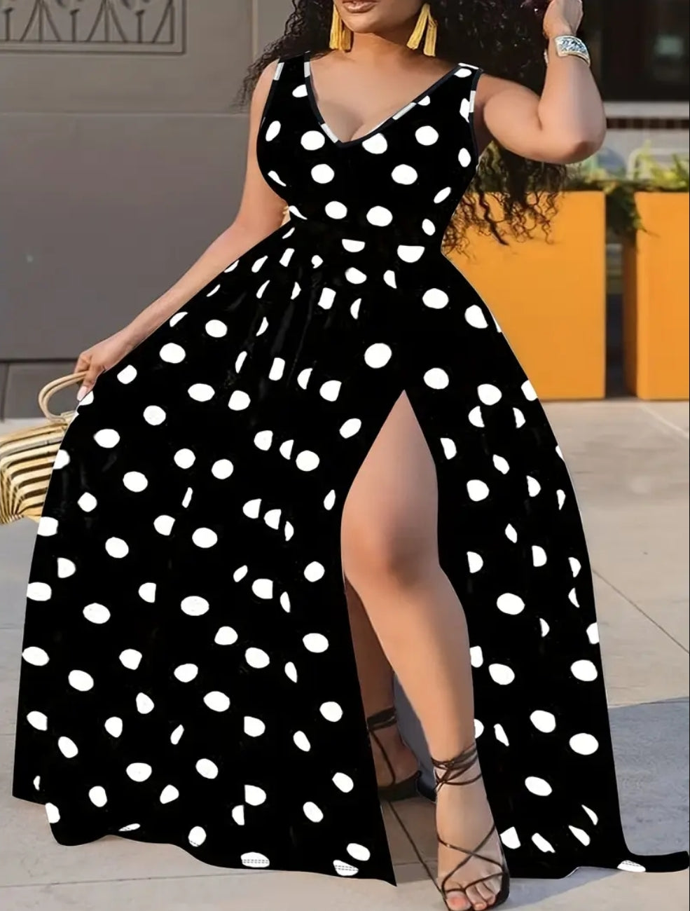 Plus Size, Spring And Summer Elegant And Fashionable Polka Dot Print Sexy Design Women's Plus Size Sleeveless V-neck Dress [directional]
